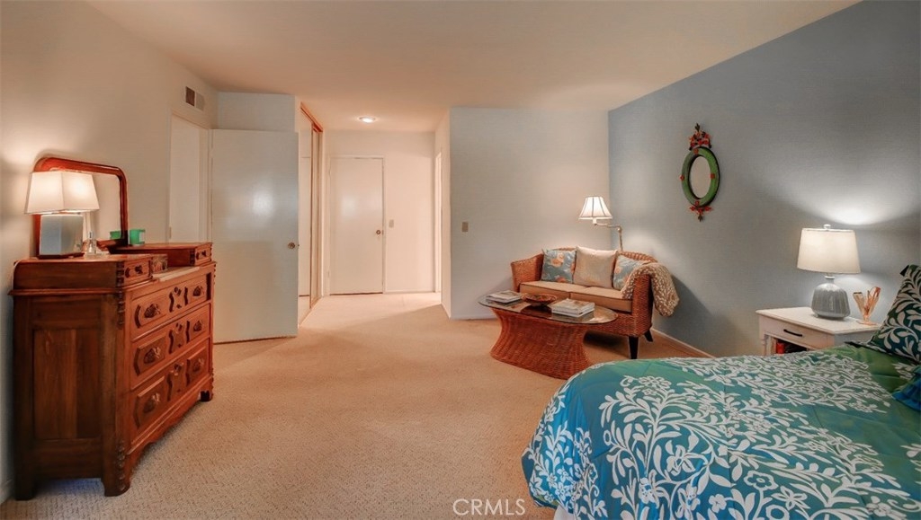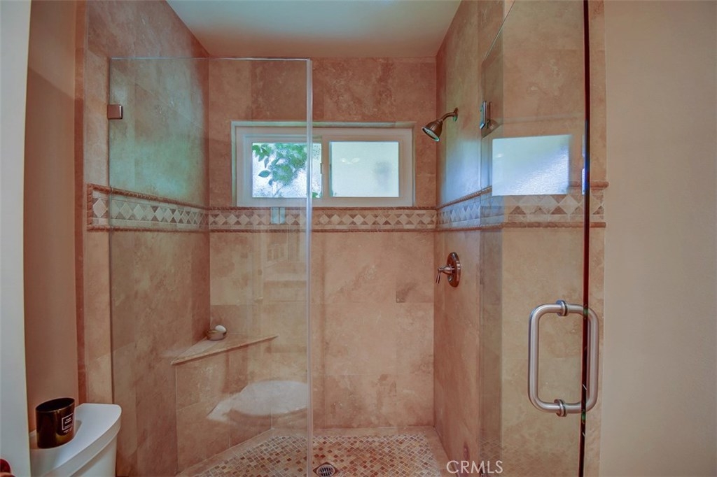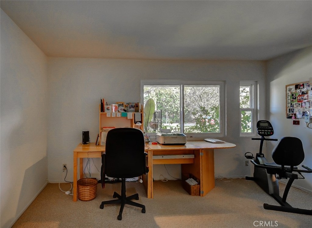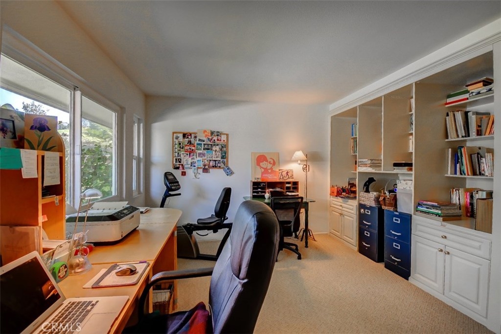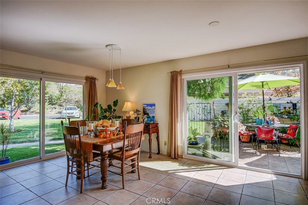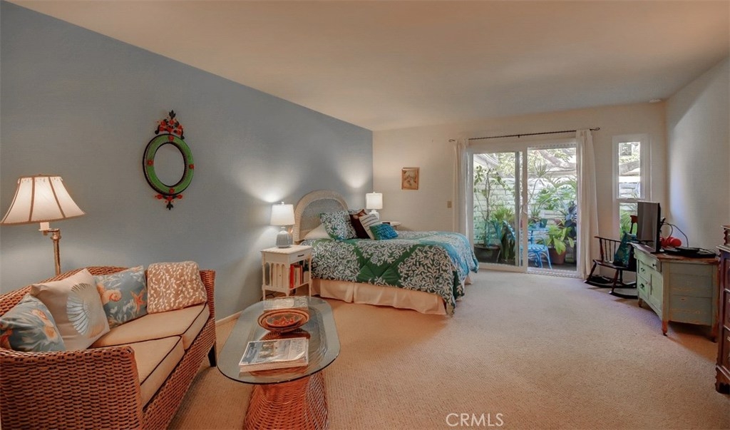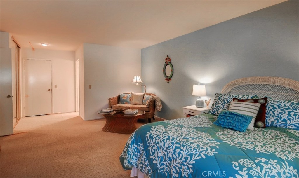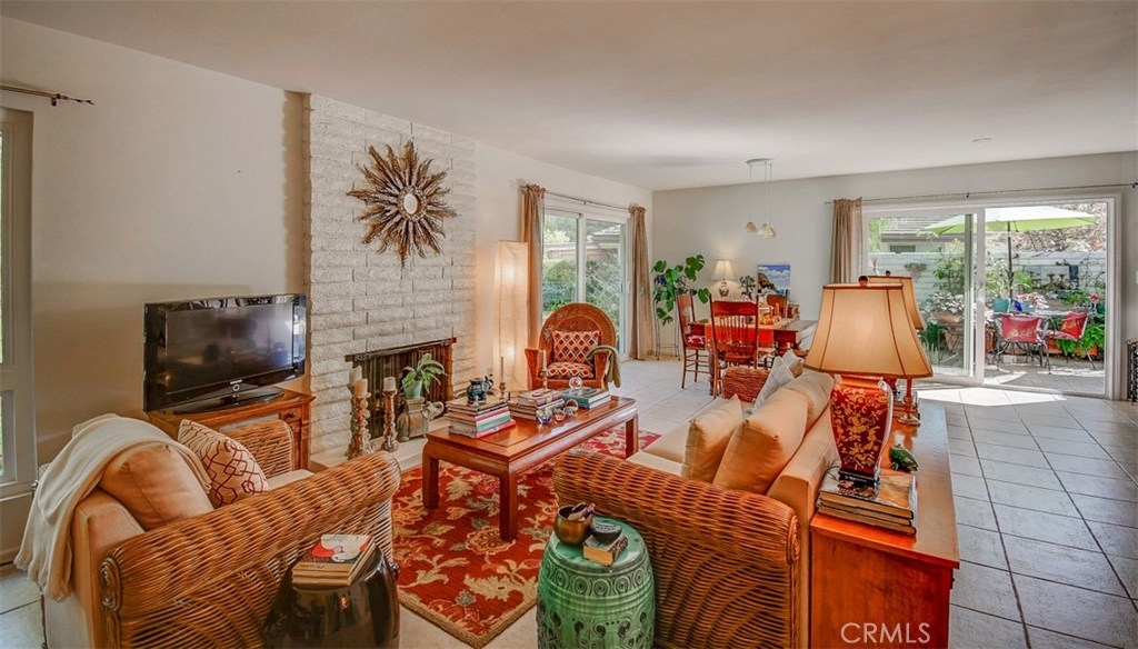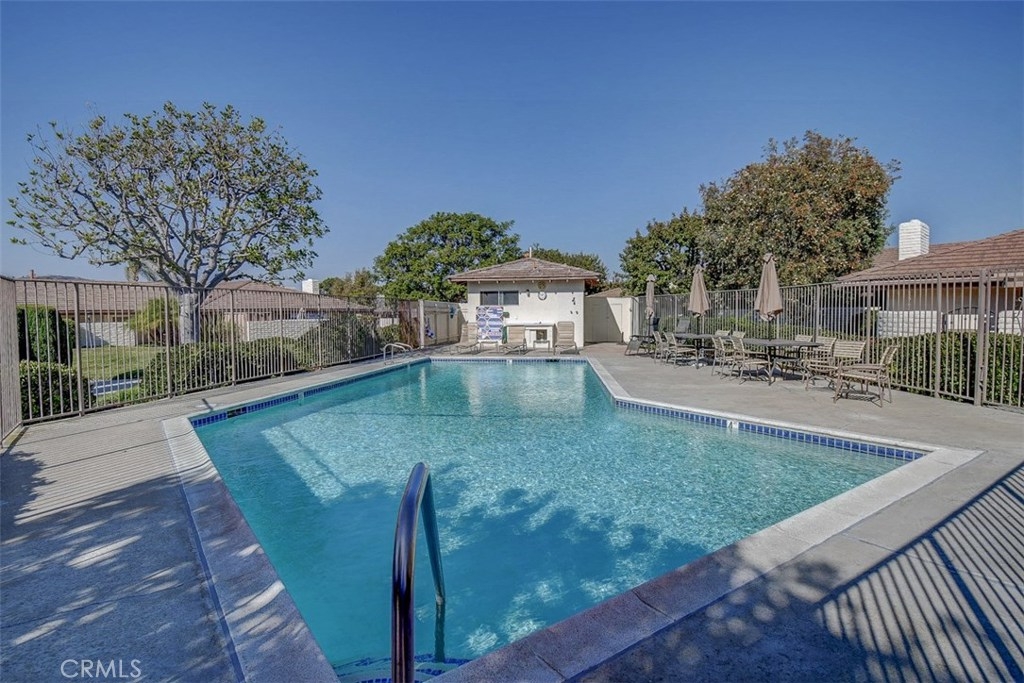 One of the best locations within the community. Coveted end unit location with lovely views of the greenbelt and peek a boo view of the Golf Course above, this home will please the fussiest buyer. Tastefully updated kitchen features quartz counter tops, under mounted stainless steel farm sink, fully tiled back-splash with glass tiles, bar seating. Fantastic open concept floor plan, with kitchen, dining and living room all open to each other and sliding glass doors out to the lush private patio on the side and a sliding glass door out to the front green belt area. New windows throughout. Both of the bathrooms have been remodeled and are gorgeous. The master bathroom features travertine tiled floors, counter top, and full walk in shower. The secondary bath features glass tile counter. The large master bedroom has a sliding glass door out to a side private patio. Inside washer dryer hook ups. Easy to access two car garage just steps from the front door. Community features swimming pool close by. Close to shopping, golf course, the beach. Wonderful 55+ community. One bedroom currently used as an office.