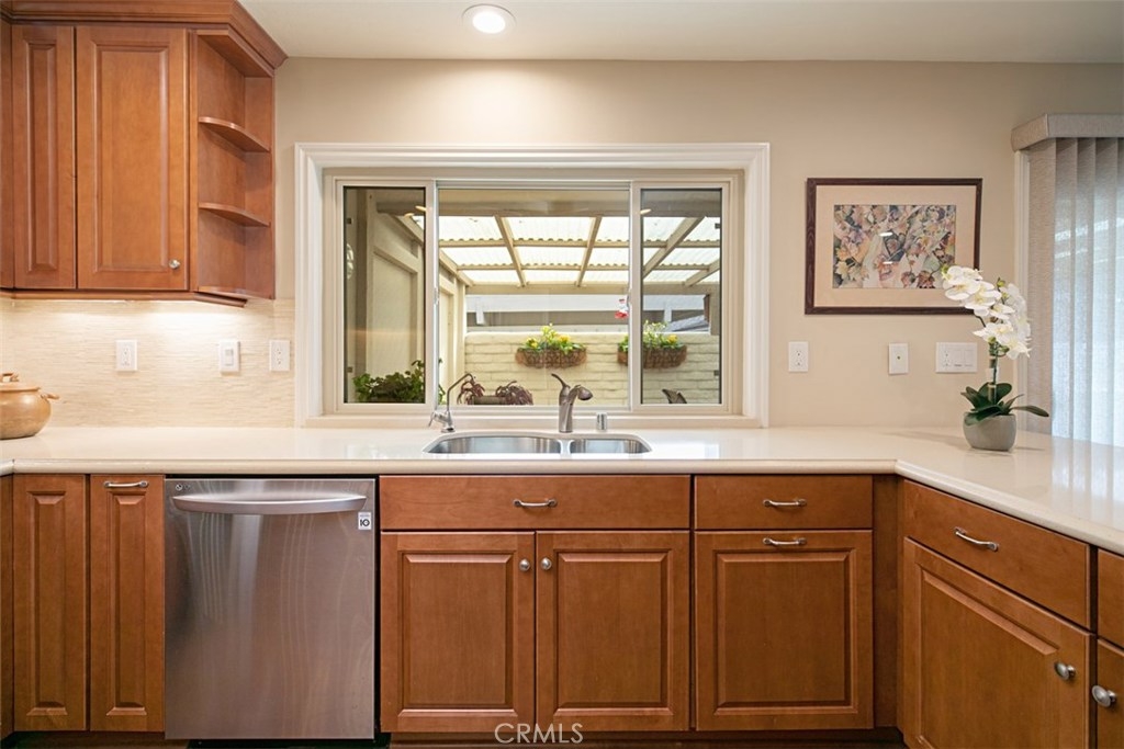 Fabulous updated single level in the premier senior community of San Juan Hills,located on the most desirable street backing to the San Juan Hills Golf Course.Enter through a custom front door with unique side light feature for added ventilation.Rich cherry laminated floors travel throughout the great room with center fireplace and two sets of sliders opening to scenic greenbelt and a generous,covered lanai with tile flooring and 2 storage sheds.The kitchen has been completely remodeled with custom cabinets,quartz countertops with stone backsplash,stainless steel appliances,and sit-up bar.Attention to detail was put into the upgrades,including NEWER VINYL DOORS AND WINDOWS, REPIPED, newer heating and air conditioning,updated LED lighting,and ceiling fans.Two spacious guest rooms share a bath.Bright,open master suite delights with walk-in closet,and covered patio facing the golf course.Detached 2 car garage and plenty of guest parking is provided along the private street.This premier senior community has many of the desirable features that a buyer seeks in an active adult environment,with beautiful golf course,scenic setting and moderate climate.Each cluster of homes has a community pool and patio connected by winding trails surrounded by shady trees and greenbelts.A short walk to the golf course and close to historic downtown San Juan Capistrano,the Mission,great restaurants,shopping,and easy freeway access and a short drive to Doheny Beach.