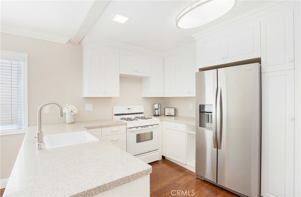 This home has been lovingly remodeled throughout! Some of the upgrades include, hardwood floors, crown molding, ceiling fans in every room, new tankless water heater, new roof, upgraded kitchen, bathrooms, and epoxy garage floor!!! The spacious floor plan has two large living areas on the main floor. The kitchen is open to the living areas and features great storage, wood paneled dishwasher and a laundry room with storage cabinets! The relaxing side yard has been lushly landscaped with beautiful trees, artificial grass and overhead lights. Completing the main floor is a redone powder room and large storage closet. Upstairs there are 4 bedrooms and 2 full bathrooms. the large Master bedroom has an ensuite spa like bathroom that has been redone and includes newly tiled shower with modern glass sliding door, glass top counter sink, new hardware and molding throughout. The other three upstairs bedrooms feature crown molding, large closets and ceiling fans. The hall bath has also been upgraded and even features a floor made out of pennies!! The attached single car garage has built in storage with doors, epoxy floor and a skylight that makes the space light and bright and a carport with storage. This home is turn key and ready for you to make it yours. It is a short distance from the beach and freeway close. The complex offers a pool with spa, play area, beautiful pathways to walk and trails that can take you right to the beach!!