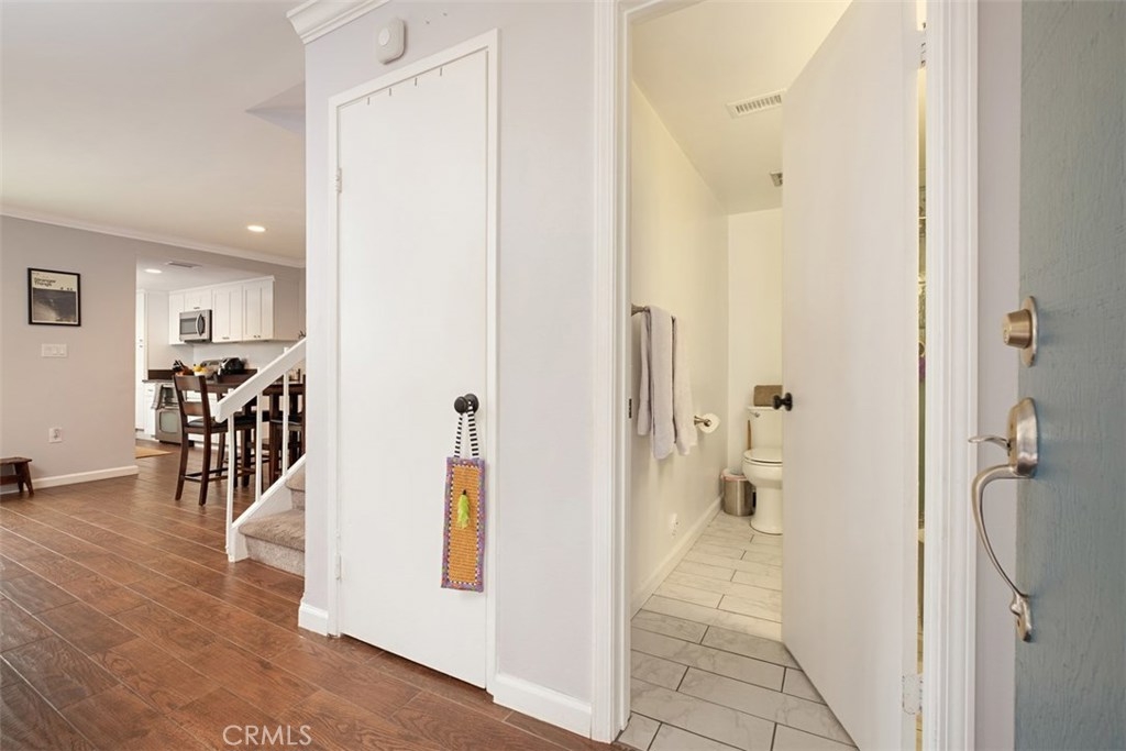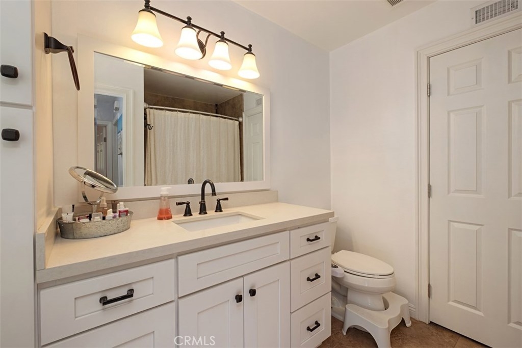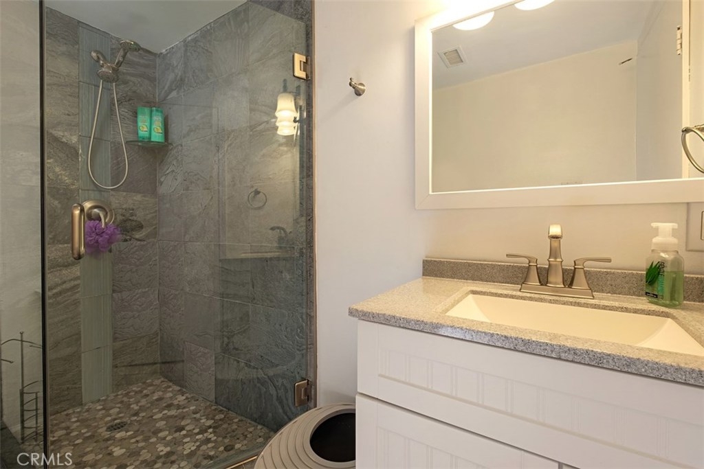 Updated Townhome in the sought after Village San Juan community. This home offers an upgraded and open floor plan. There is a downstairs bedroom and bathroom, making this property extra appealing. The great room overlooks the front patio and has dual sliding doors that open to the private and gated back patio. Just off the great room is the kitchen with stylish cabinets, stone counter tops and a view of the back patio. Through the kitchen is the laundry room with a side-by-side washer/dryer setup which leads to the single car attached garage. Upstairs offers a good size master and secondary bedroom along with an upgraded bathroom. There is also an assigned parking spot next to the garage and additional parking available with a pass. The community offers a tranquil environment but remains extremely accessible for commuters or travelers. The Seller has done a wonderful job updating and maintaining this property and is certainly worth a look.