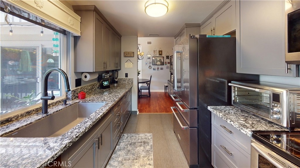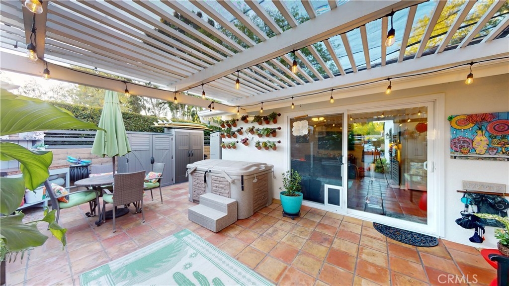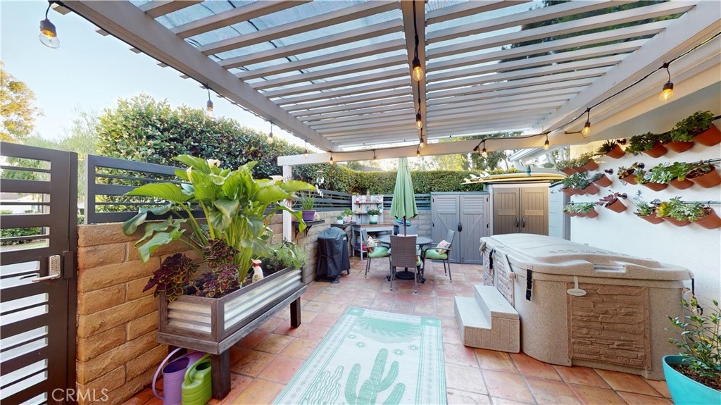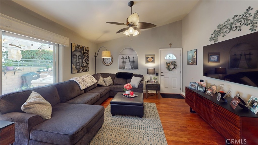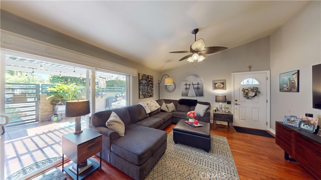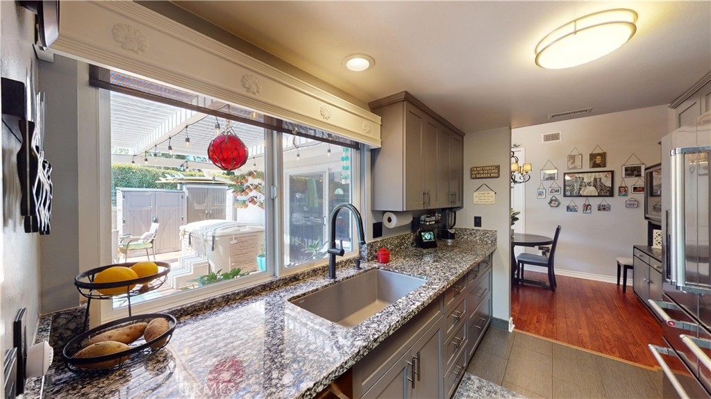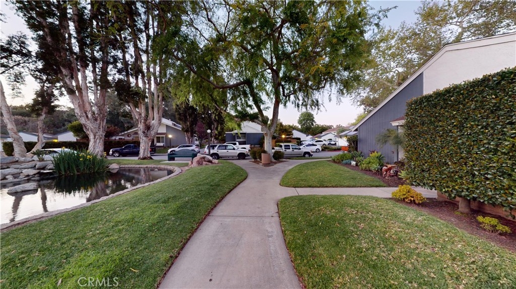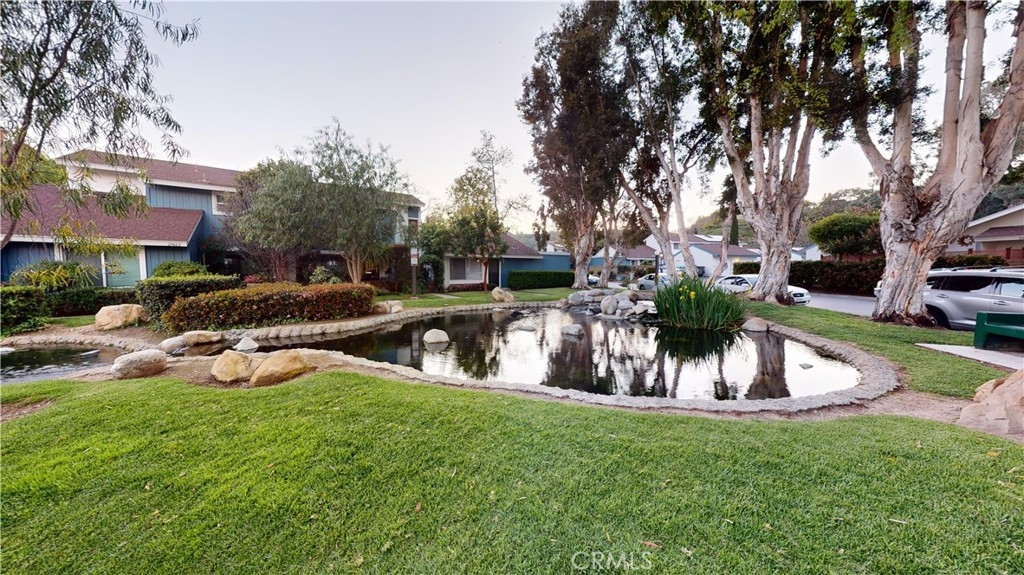 Remodeled, Turn-Key, single-story, end unit, San Juan Village townhome, located directly adjacent the adorable and relaxing pond-water-feature (nature even provided it with resident Mallard duck couple). Everything is naturally gorgeous outside and inside, as it was recently remodeled in the Kitchen and baths. All windows upgraded to vinyl, dual pane. Medium-toned hardwood engineered flooring with upgraded five inch baseboards throughout living areas; featuring through-body porcelain tile in kitchen, laundry, and main bath with same-tile baseboards. Matching contemporary grey, shaker-style cabinetry throughout home with soft-close hardware in kitchen. Samsung five-burner, electric range top with dual, convection ovens that convert to one large oven when needed. Completely owned, 20 panel solar system comes with the townhome. Newer HVAC installed in attic for more storage room with enlarged storage/coat closet in entry/dining room. Relax on the large 390 square foot, sun-covered wrap around patio, or take a long hot soak in the two person Eco Spa Tub (negotiable item not included in list price). Security gates with digital key-pad locks for easy family access at the rear garage passage door and both patio gates. Don?t wait on this one, it will be gone quickly with all the upgrade features, impeccable overall condition, and superior water feature location; it?s got everything on your checklist!