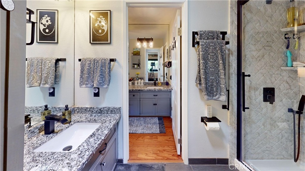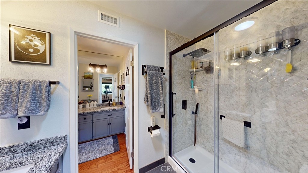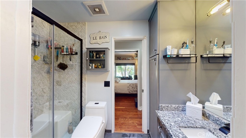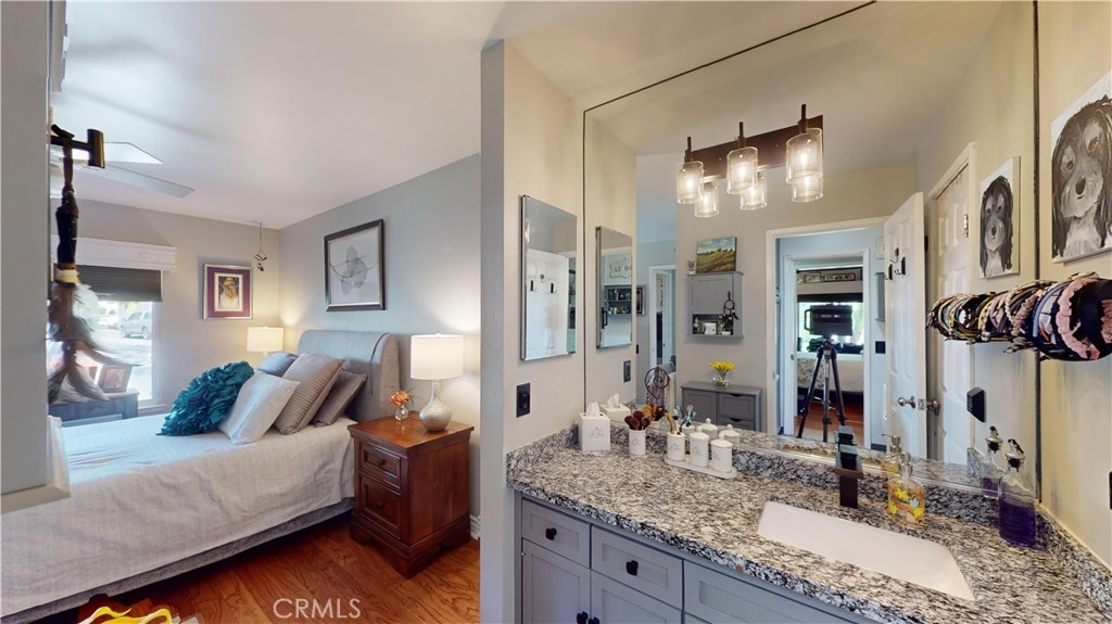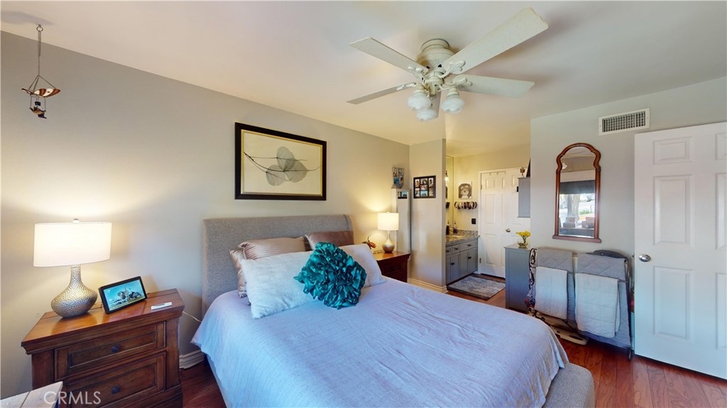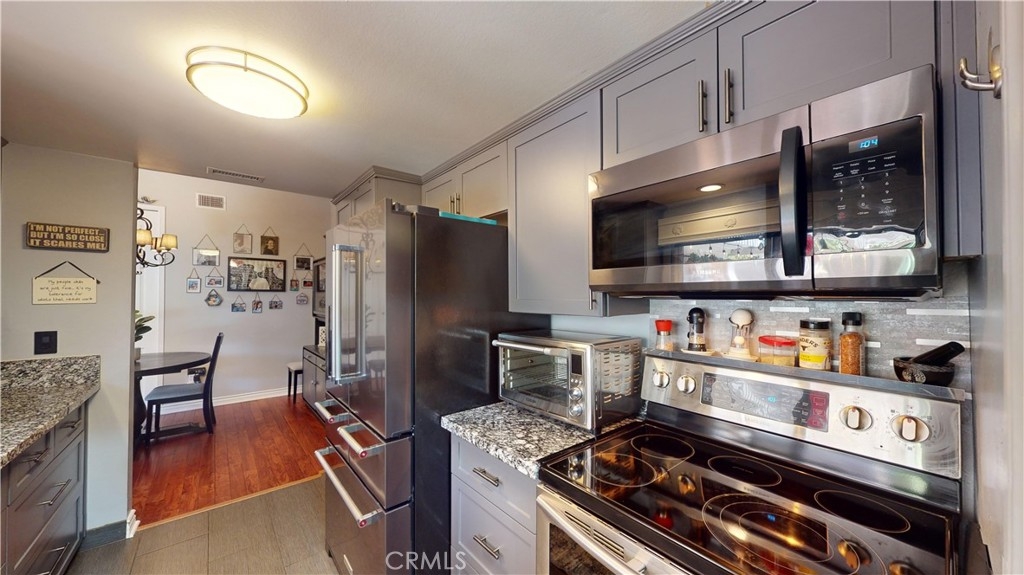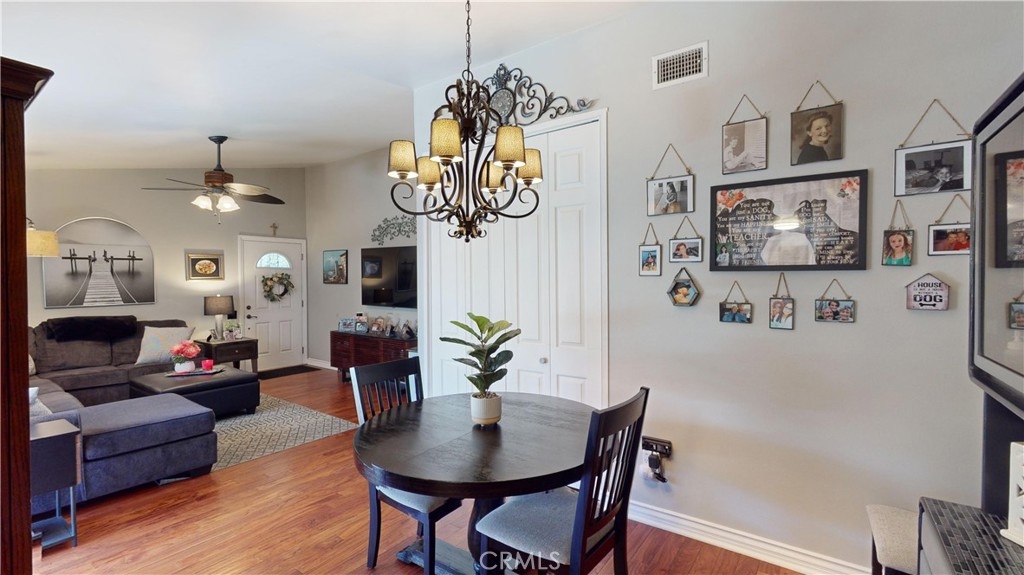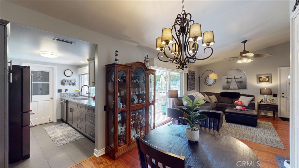 Remodeled, Turn-Key, single-story, end unit, San Juan Village townhome, located directly adjacent the adorable and relaxing pond-water-feature (nature even provided it with resident Mallard duck couple). Everything is naturally gorgeous outside and inside, as it was recently remodeled in the Kitchen and baths. All windows upgraded to vinyl, dual pane. Medium-toned hardwood engineered flooring with upgraded five inch baseboards throughout living areas; featuring through-body porcelain tile in kitchen, laundry, and main bath with same-tile baseboards. Matching contemporary grey, shaker-style cabinetry throughout home with soft-close hardware in kitchen. Samsung five-burner, electric range top with dual, convection ovens that convert to one large oven when needed. Completely owned, 20 panel solar system comes with the townhome. Newer HVAC installed in attic for more storage room with enlarged storage/coat closet in entry/dining room. Relax on the large 390 square foot, sun-covered wrap around patio, or take a long hot soak in the two person Eco Spa Tub (negotiable item not included in list price). Security gates with digital key-pad locks for easy family access at the rear garage passage door and both patio gates. Don?t wait on this one, it will be gone quickly with all the upgrade features, impeccable overall condition, and superior water feature location; it?s got everything on your checklist!