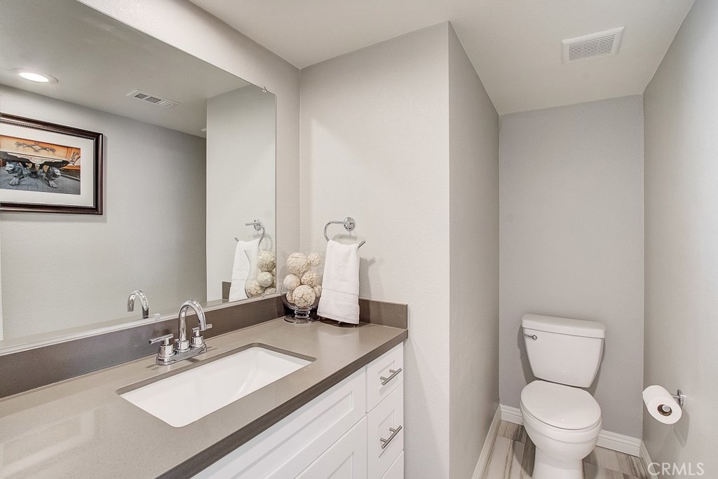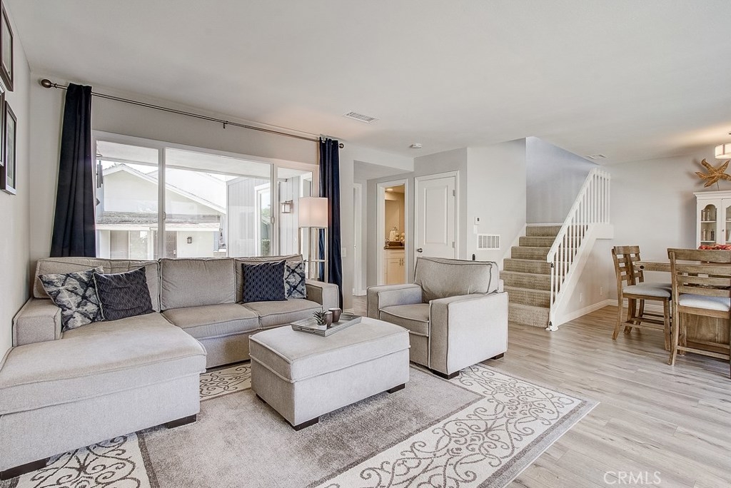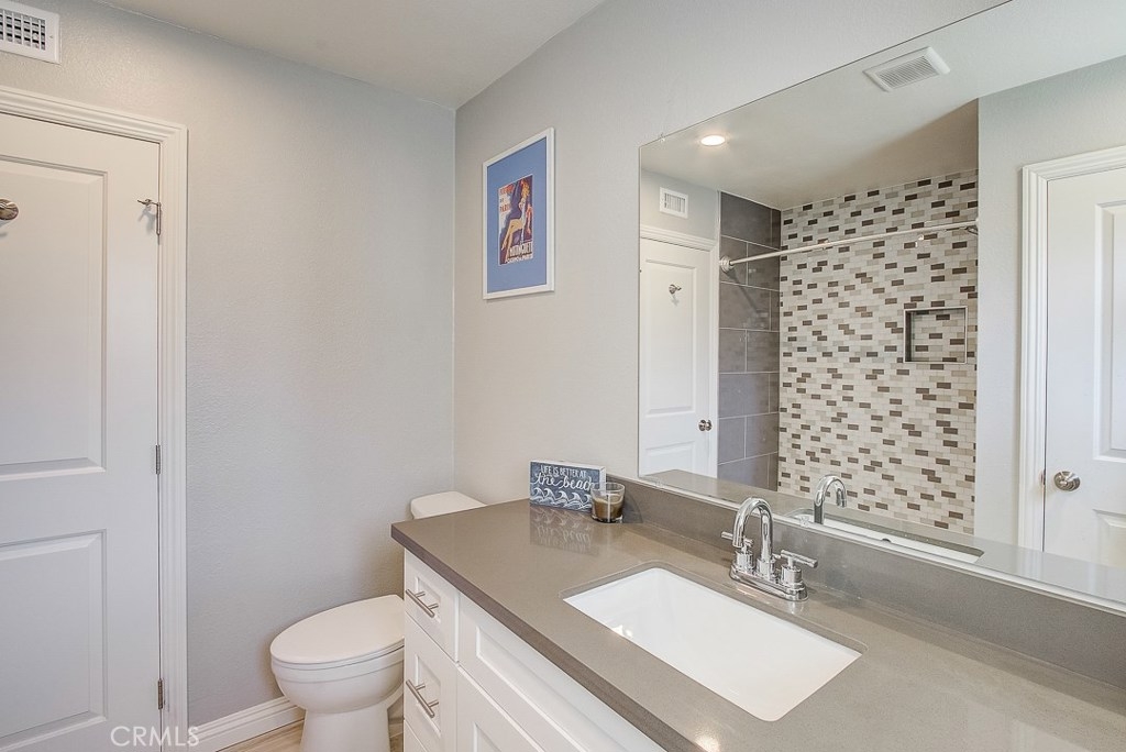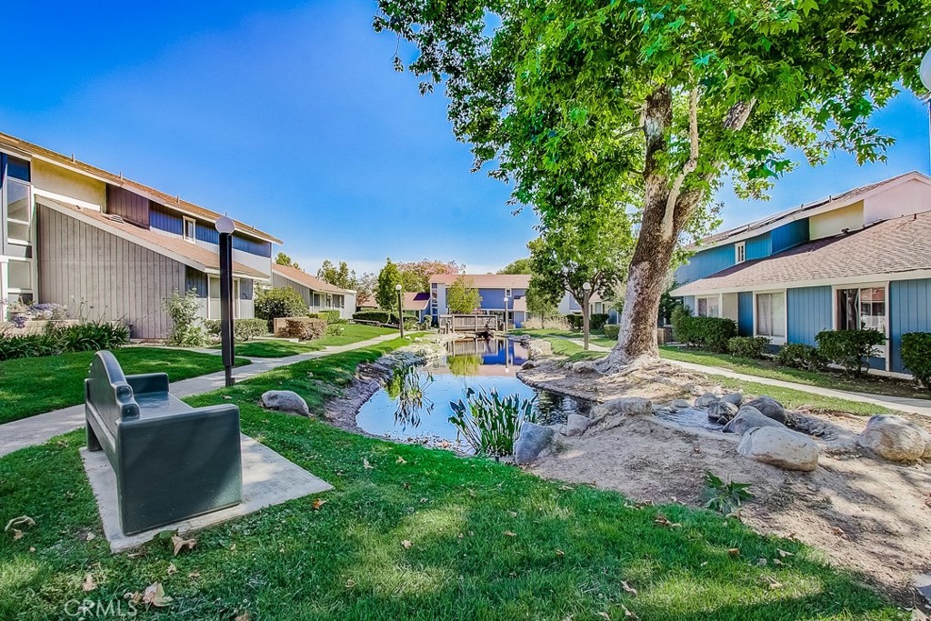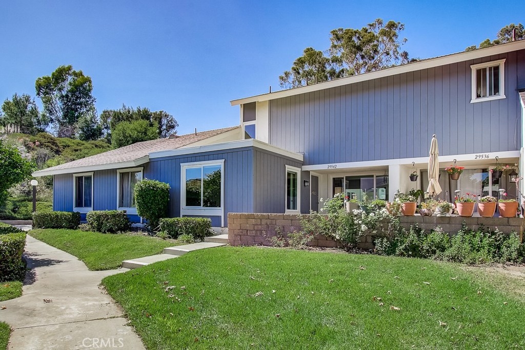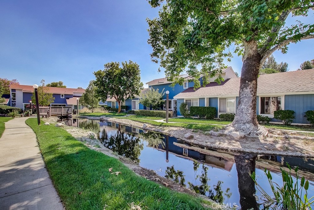 Nestled in the serene enclave of Village San Juan where peaceful ponds scattered throughout the community provide a suburban escape. As you enter you will gaze upon a light and bright open floor plan that allows the living room, dining area and kitchen to flow seamlessly together. Open the patio doors wide to let the cool breezes flow through all year long and create an indoor outdoor living environment. The upgraded kitchen features white shaker cabinetry, gorgeous counters, stainless steel appliances and recessed lighting. A bedroom and upgraded bathroom on the main level makes guests feel at home. Upstairs offers two bedrooms and an upgraded bathroom with a stunning tile surround, upgraded vanity and fixtures. The owners have also added new windows, new sliding door, LED lighting throughout, motion activated lights in both bathrooms and safety outlets (no need for child protection covers). Sit on the private patio and drink in the idyllic Southern California weather. The attached one car garage adds more storage space and makes parking a breeze. There is also one assigned parking space too. Village San Juan offers its residents 3 parks, 3 pools with wading pools, duck ponds and a clubhouse for your events. Quick freeway access will make commuting a breeze. Come and enjoy all this property has to offer!
