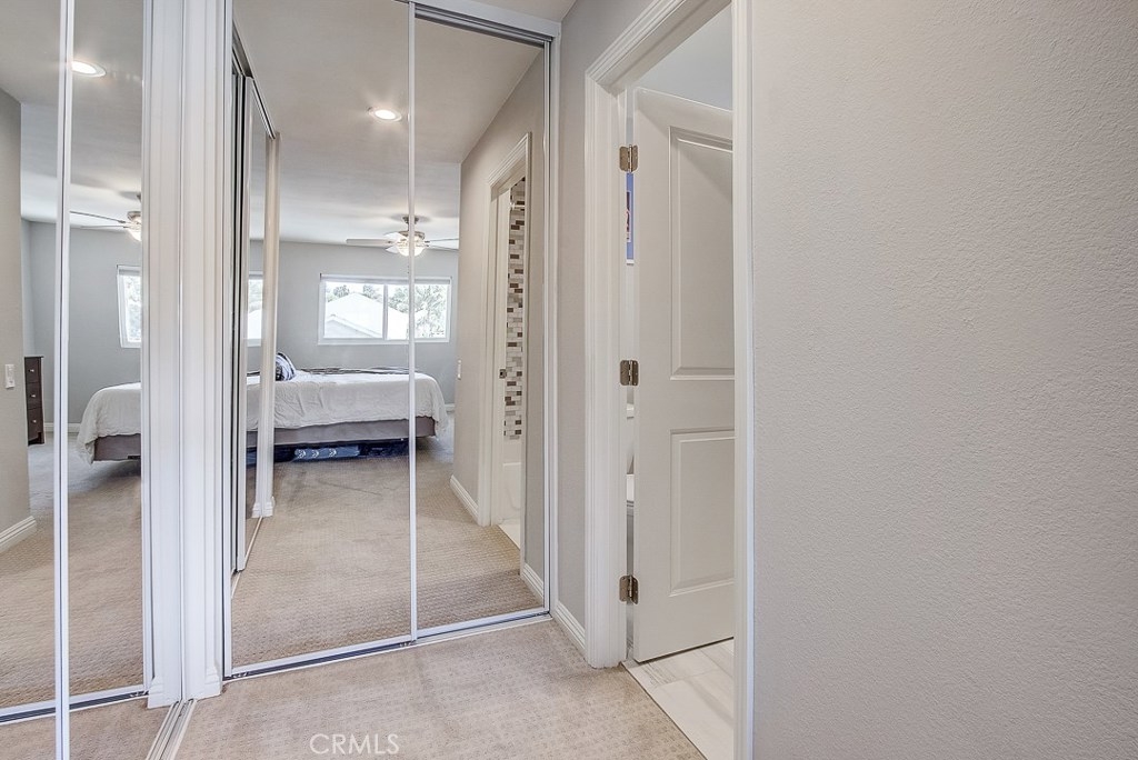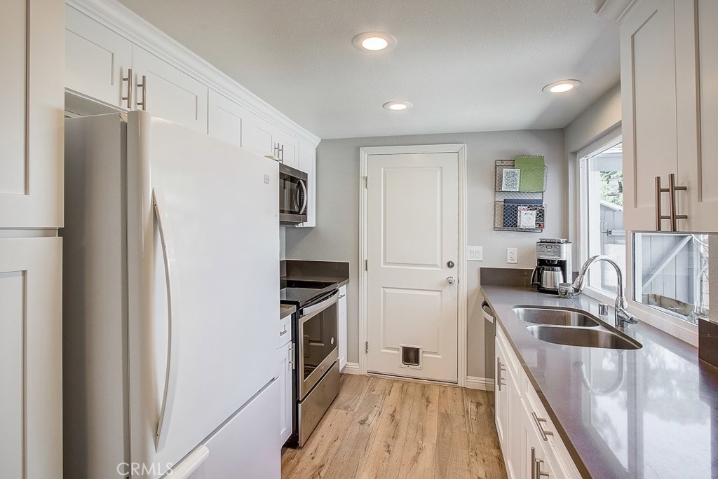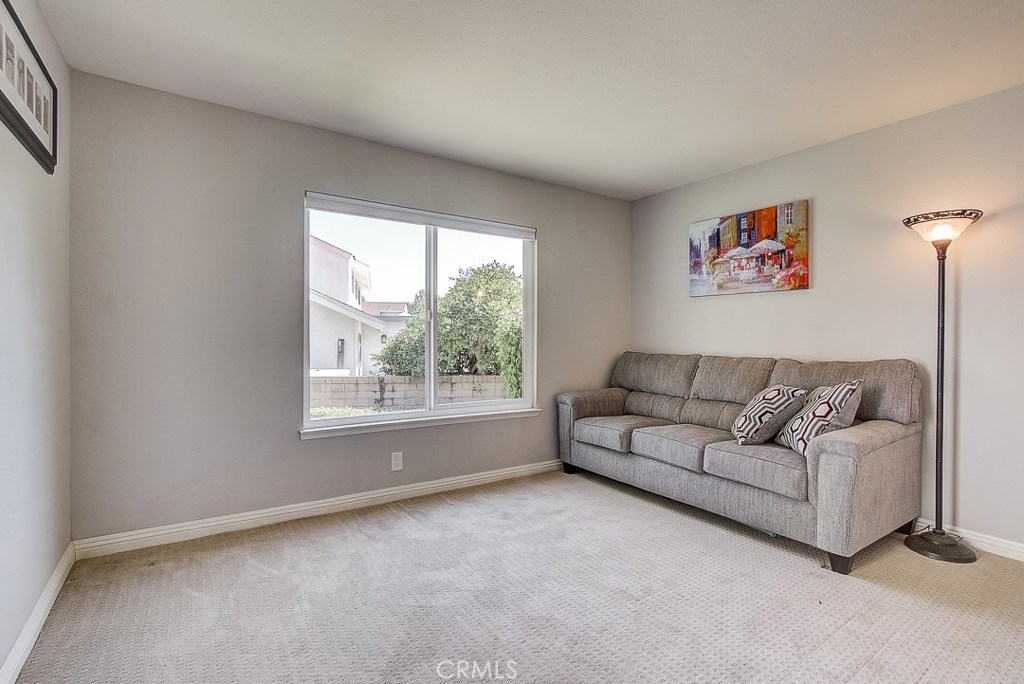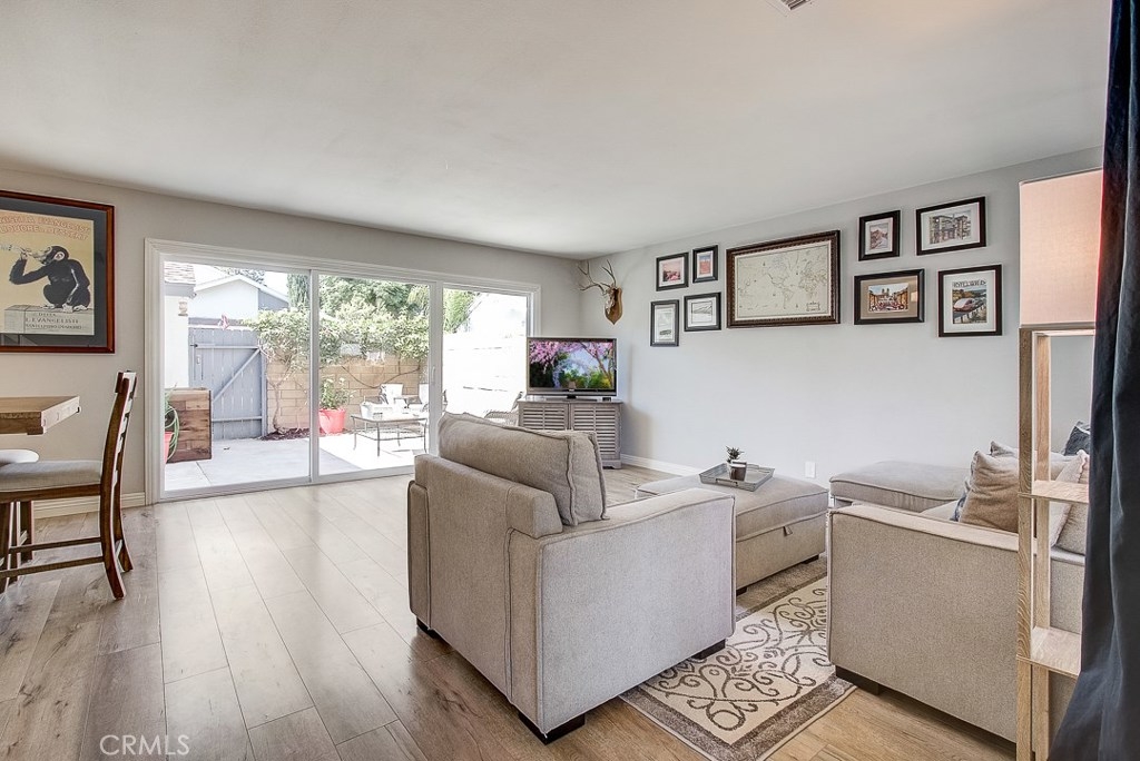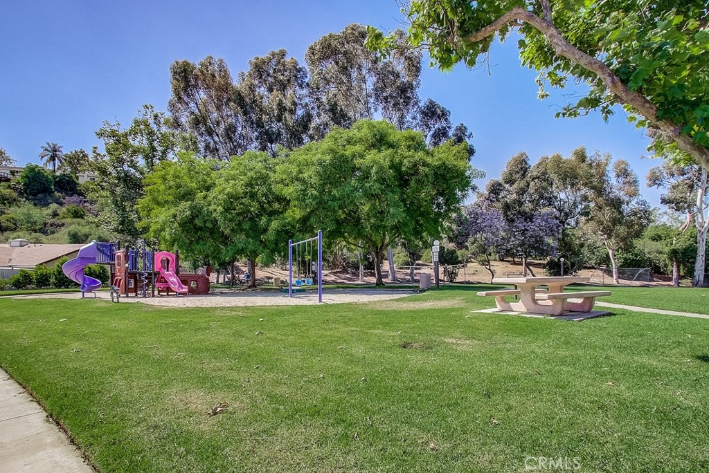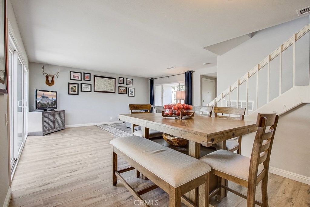 Nestled in the serene enclave of Village San Juan where peaceful ponds scattered throughout the community provide a suburban escape. As you enter you will gaze upon a light and bright open floor plan that allows the living room, dining area and kitchen to flow seamlessly together. Open the patio doors wide to let the cool breezes flow through all year long and create an indoor outdoor living environment. The upgraded kitchen features white shaker cabinetry, gorgeous counters, stainless steel appliances and recessed lighting. A bedroom and upgraded bathroom on the main level makes guests feel at home. Upstairs offers two bedrooms and an upgraded bathroom with a stunning tile surround, upgraded vanity and fixtures. The owners have also added new windows, new sliding door, LED lighting throughout, motion activated lights in both bathrooms and safety outlets (no need for child protection covers). Sit on the private patio and drink in the idyllic Southern California weather. The attached one car garage adds more storage space and makes parking a breeze. There is also one assigned parking space too. Village San Juan offers its residents 3 parks, 3 pools with wading pools, duck ponds and a clubhouse for your events. Quick freeway access will make commuting a breeze. Come and enjoy all this property has to offer!