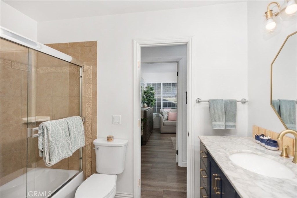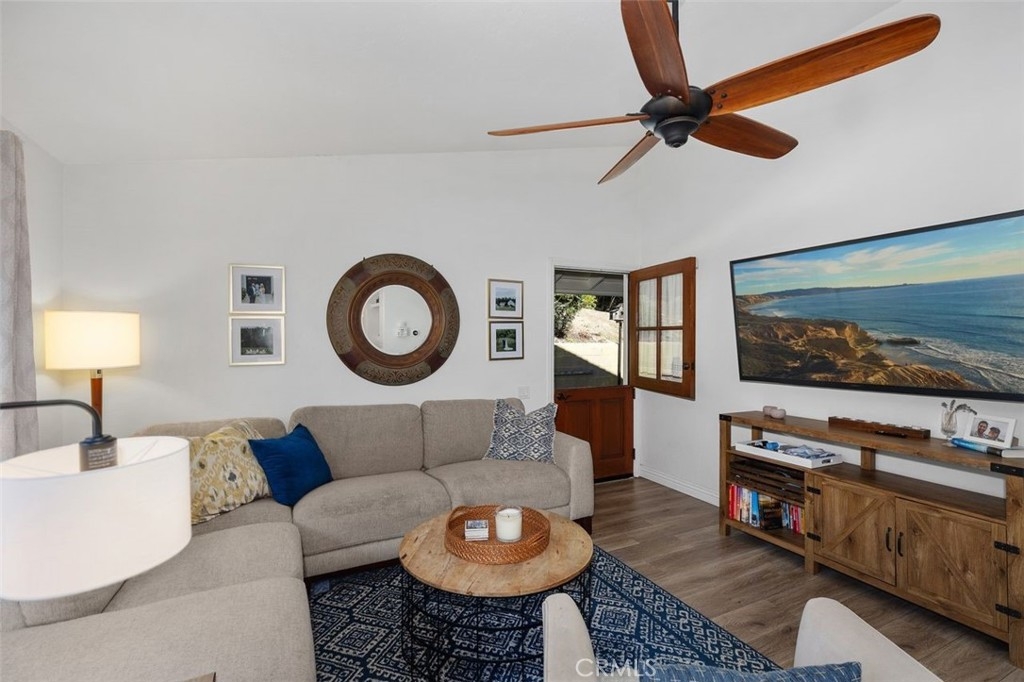 Beautiful and remodeled, this PREMIUM corner lot home is a single-story end unit. The home is located in the San Juan Village townhome community and features an open floor plan with great natural lighting. The large open living room is open to the dining room and large entertainers back yard! The home has newer hardwood floors, newer custom paint, 3 large room and a remodel bathroom with barn door entrance. The kitchen is galley-style and has direct access from the garage. Newer vinyl windows through out, ceiling fans and can lighting! Solar system has been installed, Newer AC installed as well! One of the most amazing features of this home is the custom stone and paver back yard with ambiance lighting, wood privacy lattice on top of the custom stone walls and large patio cover! Relax and enjoy sunsets and BBQ's host your family parties year around! Security gates with digital key-pad locks for easy family access at the rear garage passage door and both patio gates. This one is a true gem and you don't want to miss out!
