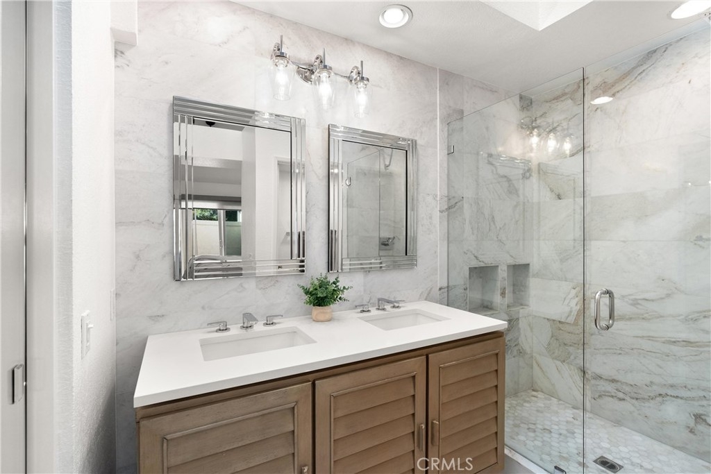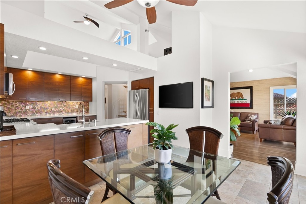 Discover this exquisite Mesa Verde home in the heart of a desirable San Juan Capistrano community, offering breathtaking views of San Juan Hills. This beautifully remodeled home blends style and functionality, with the convenience of a single-story layout complemented by a versatile upstairs loft. The loft space is ideal for use as an office, guest room, activity area, or media room. Step through a private, gated front courtyard and enter the home through a charming Dutch door, where light-filled interiors and soaring vaulted ceilings create an inviting ambiance. The main floor boasts panoramic views of the golf course and the iconic San Juan Mission, while the redesigned great room has been transformed into an expansive open living area. This space features elegant wood flooring, custom cabinetry, a wine refrigerator, and additional storage. A former bedroom was opened to expand the great room, but it can easily be converted back if desired—though its current layout is truly exceptional.The chef’s kitchen is a masterpiece, completely remodeled with quartz countertops, sleek cabinetry, a custom backsplash, and premium stainless steel appliances. Adjacent to the kitchen, the spacious dining area provides a warm and welcoming setting for family meals and entertaining. The luxurious primary suite features vaulted ceilings, direct access to a private patio, and an upgraded ensuite bathroom with dual vanities and spa-like finishes. A second bedroom with a Murphy bed and vaulted ceilings offers versatility and comfort, while the upgraded guest bathroom boasts premium finishes and thoughtful design.This home’s multiple living spaces seamlessly transition to private, fully enclosed front and back patios, creating a tranquil oasis for relaxation and outdoor entertaining. Additional highlights include an attached two-car garage with convenient laundry hookups, recessed lighting, ceiling fans, custom wall treatments, a designer fireplace mantel, and an improved backyard with stylish seating and a covered area for enjoying the serene surroundings.Ideally located to local highways and schools, this home offers access to San Juan Capistrano’s equestrian trails, stables, historic mission, quaint restaurants, and boutique shops. It’s just minutes from Dana Point Harbor, renowned beaches, and the San Juan Hills Golf Course, with hiking and biking trails right outside your door. The community also features a pool area and optional RV parking when available.