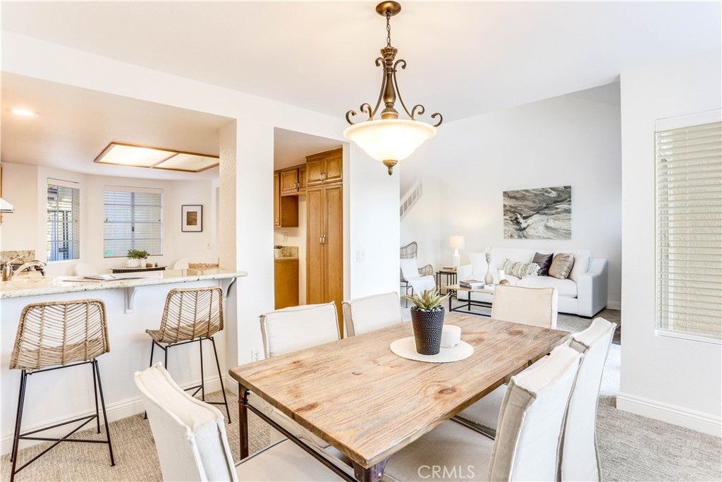 Hear the Mission Bells and Enjoy the Cool Coastal Breezes from this charming 2 bed | 2.5 bath Mesa Vista Townhome. Enter through the private gated courtyard and step into a move-in ready home with a flexible floor plan that features welcoming living and dining room spaces ideal for entertaining. Sliding glass doors open from the living room to the hardscaped backyard with a seating deck that affords a fabulous indoor/outdoor California lifestyle - a perfect place to entertain. Upgraded kitchen includes granite countertops, at-counter seating, wood cabinetry, ceramic tile floors, and a lovely breakfast nook overlooking the front courtyard. The serene master suite boasts sweeping city views, including the “Crown Jewel” of the Missions, and is well appointed with a ceiling fan, custom blinds, large bathroom with step-in shower as well as 2 large closets. The second bedroom features an ensuite bathroom with a tub/shower enclosure, large closet and is spacious enough to accommodate a queen sized bed. An attached two car garage offers direct access to this private and pristine residence. Other highlights include powder room with custom copper sink, individual laundry room with overhead cabinetry, freshly painted throughout and brand new carpet. Nestled in the rolling hills of historic San Juan Capistrano, Mesa Vista offers 3 pools/spas, and provides easy freeway access. Located just minutes away from award winning schools, shopping, hiking, world class beaches, fine dining, equestrian facilities, golf & historic downtown. Welcome Home!