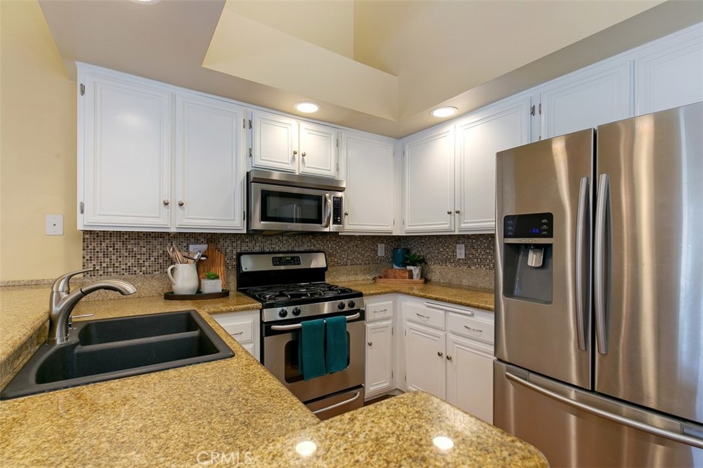 Perfect for the first-time home buyer or a budding family, this end-unit home in the Mesa Vista North community has everything you need to come home to. This residence is located at the end of a charming cul de sac, making it feel very private and cozy. Once you walk in the door, you will be greeted by tall ceilings and a family room with stone fireplace. The kitchen has granite countertops, stainless steel appliances, and space to enjoy a meal with the family. All three bedrooms are downstairs, and the master bedroom has a private patio for those romantic evenings alone. Up the spiral staircase waits a loft area, ideal to make into a personal office, kids playroom, or media room. The two-car garage is attached with laundry hookups, storage, and a work bench. There is also plenty of space for cars in the driveway and guest parking in the cul de sac. There are citrus trees and rose bushes lining the side yard, and the backyard has an upgraded "Trex" deck perfect for entertaining your friends. The Homeowner's Association maintains most everything outside of the front door so you can relax and enjoy the weekends. "New Beginnings" awaits... Take advantage and make an offer TODAY!