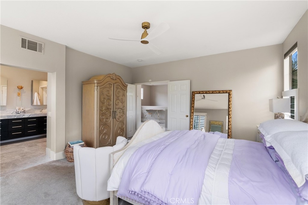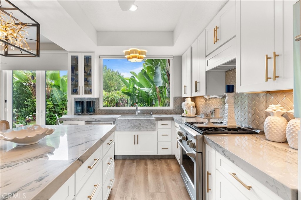 Stunning residence located at 27791 Camino Del Rio within the gated San Juan Hills community in San Juan Capistrano, offering an open floor plan, mountain and city light views, and a golf course setting with no ball exposure. Thoughtfully designed for entertaining and everyday living, the home showcases quality craftsmanship and high-end finishes throughout. The gourmet kitchen features quartzite countertops, a large center island with additional storage, a marble farmhouse sink, walk-in pantry, and premium appliances including a Dacor 42-inch refrigerator, Monogram cooktop and oven, Advantium microwave/oven, and pull-out oven fan. The kitchen opens seamlessly to the main living areas highlighted by a gas fireplace. A light-filled loft provides flexible space suitable for a home office, lounge, or secondary living area. The primary suite includes a spa-inspired bathroom with a large walk-in shower, glass sinks, and dual vanity mirrors. Interior features include shutters throughout, four ceiling fans, and luxury vinyl tile flooring on the main level. Outdoor living areas are designed for indoor-outdoor flow and entertaining, featuring a wrap-around patio, paved entry courtyard, tranquil fountain, hardscape lighting, and a built-in grill and bar with granite counters and stove, positioned to capture scenic mountain and city light views. Additional features include epoxy garage flooring, new garage door opener, Tesla EV charger, Water Boy whole-house filtration system, ADT security system, glass-designed front door, disappearing front and rear screen doors, French doors, new tile roof, primary bedroom security screen, overhead garage storage racks, and under-stair storage. Enjoy a private, elevated setting with access to community amenities including a pool, spa, and equipped fitness center, along with nearby shopping and dining, scenic trails, and approximately 1.5 miles to downtown San Juan Capistrano.