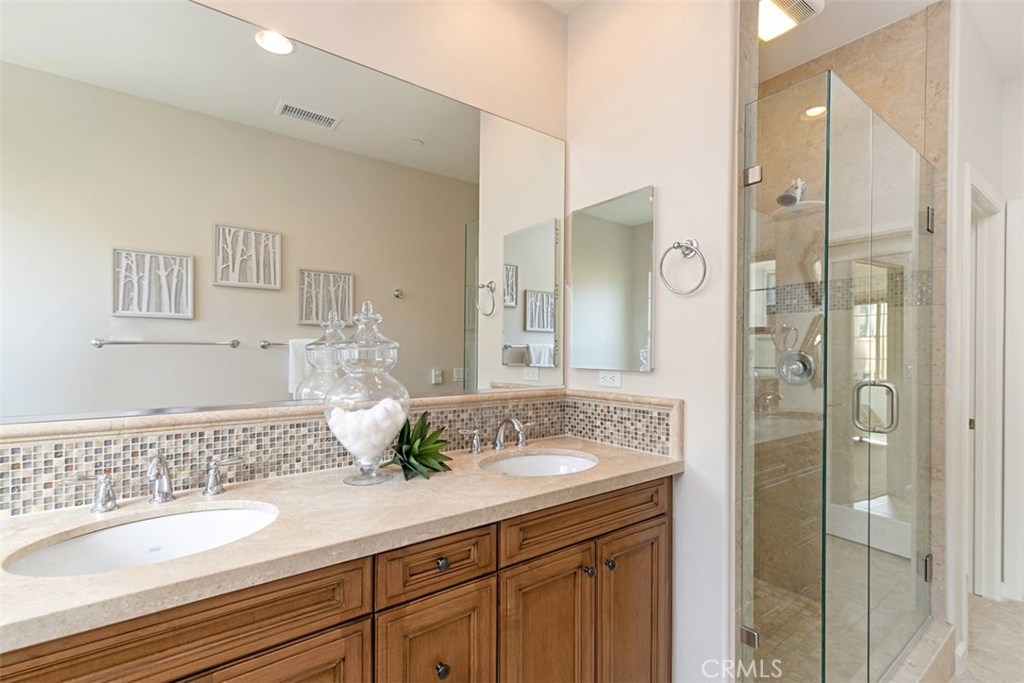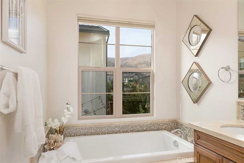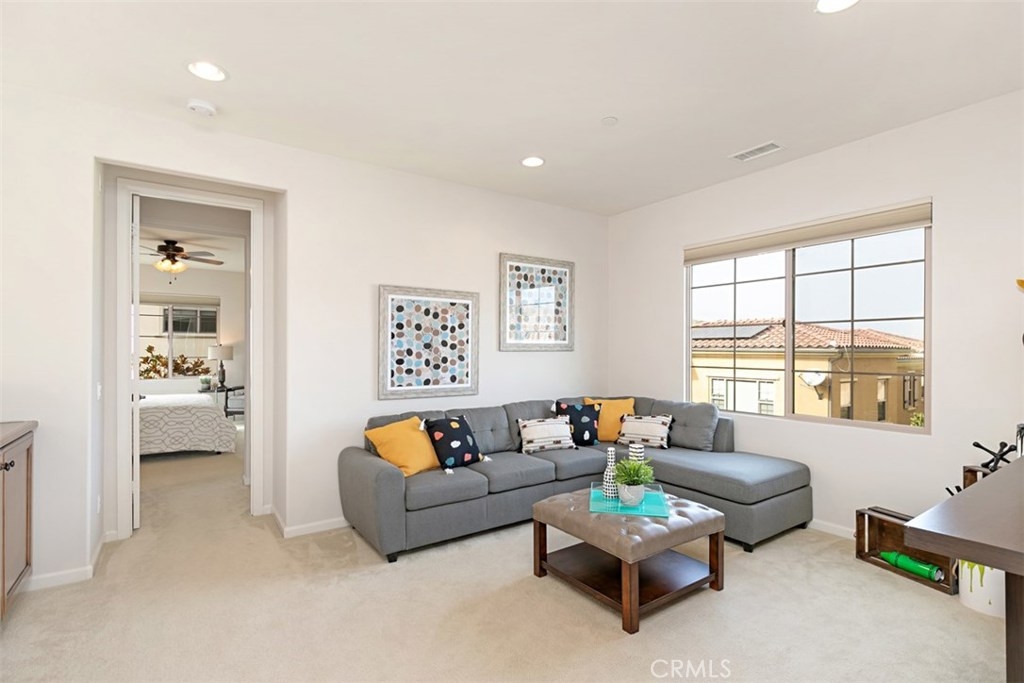 Welcome home to this beautiful, turnkey property located in the heart of the charming community of Campanilla. This extremely well-maintained house has it all: location, open floor plan, low-maintenance yard, countless upgrades, custom window treatments, fresh paint throughout and brand new Milgard windows. In touring the outdoor space, you’ll find a smartly landscaped side yard filled with various succulents and olive trees leading you to a spacious Saltillo tile patio complete with a built-in tile bench. The backyard is a well thought out combination of vegetation, grass (AstroTurf) and hardscape, providing another fabulous outdoor entertaining space to gather with friends and family. The first floor features a sizeable great room with beautiful Saltillo tile floors, a fireplace and high-end window coverings. The home’s spacious kitchen opens up into the downstairs living space and features granite countertops, upgraded wood cabinets and custom backsplash. There is a first floor powder room. The second floor includes a well proportioned loft space, two secondary bedrooms, a laundry room, bathroom and the master suite. The master bath is highly upgraded with stone countertops, deep soaker tub and frameless shower door. The home’s two car garage comes equipped with an electric car charger outlet and water softener. Low HOA and no MELLO ROOs.
