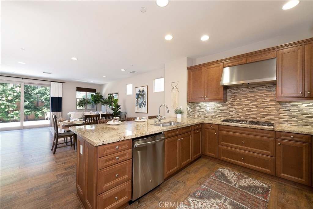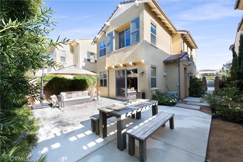 Constructed in 2013. NO MELLO ROOS!!!! This charming turnkey home boasts an open concept floor plan which seamlessly connects all of the main indoor and outdoor living areas. Upon entering the downstairs, you will find a spacious living room great room that flows smoothly into the large dining room and then into the chef's kitchen, which features upgraded custom cabinetry, stainless steel gourmet appliances, a large walk-in pantry, and large breakfast bar. The downstairs living areas open to the well-manicured and spacious wrap-around back yard area featuring a modern feel patio with custom hardscaping, mature landscaping, multiple seating areas, and EVEN an outdoor shower. Upstairs, you will find the master bedroom is spacious & airy with custom window coverings, dual walk-in closets, en suite master bath with double vanities, separate shower & soaking tub. The two secondary upstairs bedrooms, an additional bathroom, an individual laundry room with built-in cabinetry, and a large loft area with added built-in storage complete the upstairs. The loft may readily be converted to a 4th bedroom or office. Additional upgrades throughout this home include low maintenance wide plank flooring throughout the downstairs, recessed lighting, custom window treatments, granite countertops in kitchen, quartz counters in baths, ceiling fans, recessed lighting, built-ins, spacious two-car garage and so much more! Low HOA & Taxes.