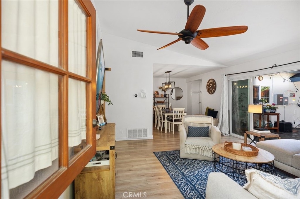 Beautiful and remodeled, this PREMIUM corner lot home is a single-story end unit. The home is located in the San Juan Village townhome community and features an open floor plan with great natural lighting. The large open living room is open to the dining room and large entertainers back yard! The home has newer hardwood floors, newer custom paint, 3 large room and a remodel bathroom with barn door entrance. The kitchen is galley-style and has direct access from the garage. Newer vinyl windows through out, ceiling fans and can lighting! Solar system has been installed, Newer AC installed as well! One of the most amazing features of this home is the custom stone and paver back yard with ambiance lighting, wood privacy lattice on top of the custom stone walls and large patio cover! Relax and enjoy sunsets and BBQ's host your family parties year around! Security gates with digital key-pad locks for easy family access at the rear garage passage door and both patio gates. This one is a true gem and you don't want to miss out!