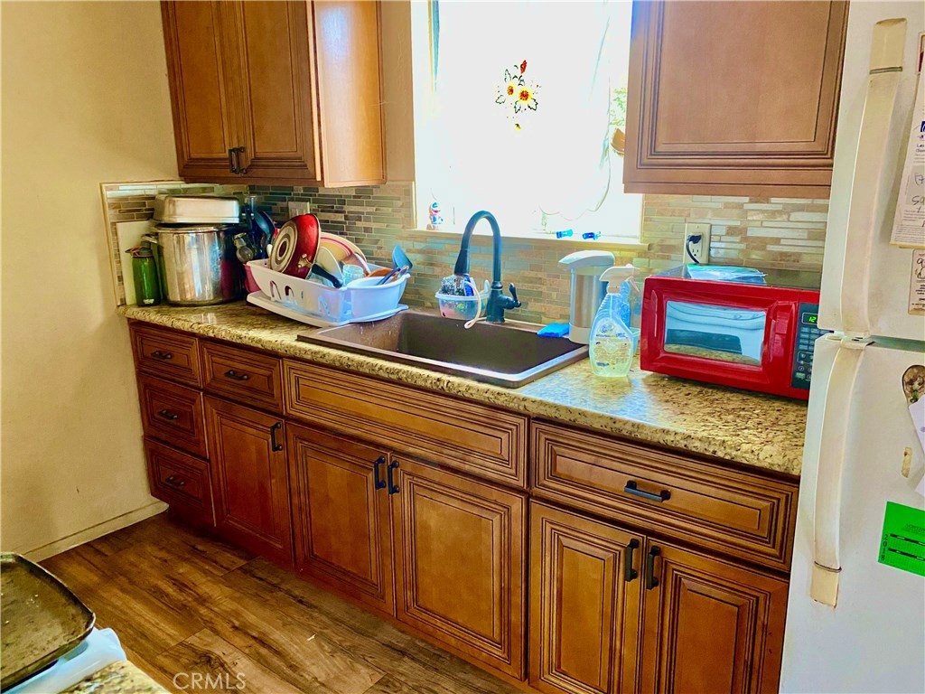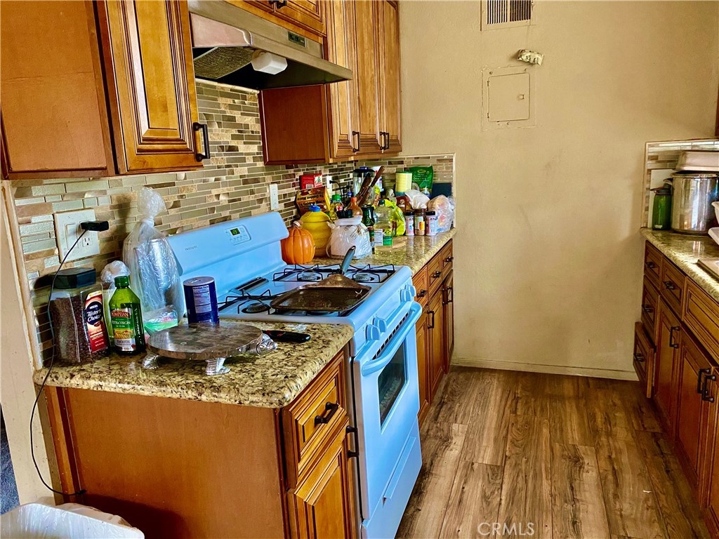 Condominium in Capistrano Villas. 2 bedroom 1 bathroom, all one level condominium. Recently remodeled kitchen with new cabinets and counter tops. New sink, new sink faucet, stainless steel range hood, decorative backsplash. Box beam ceiling an new light fixture.New wood floors in kitchen, dining room, living room and both bedrooms. Tile floor in bathroom and new vanity. Hill view from kitchen window and balcony. One car garage.