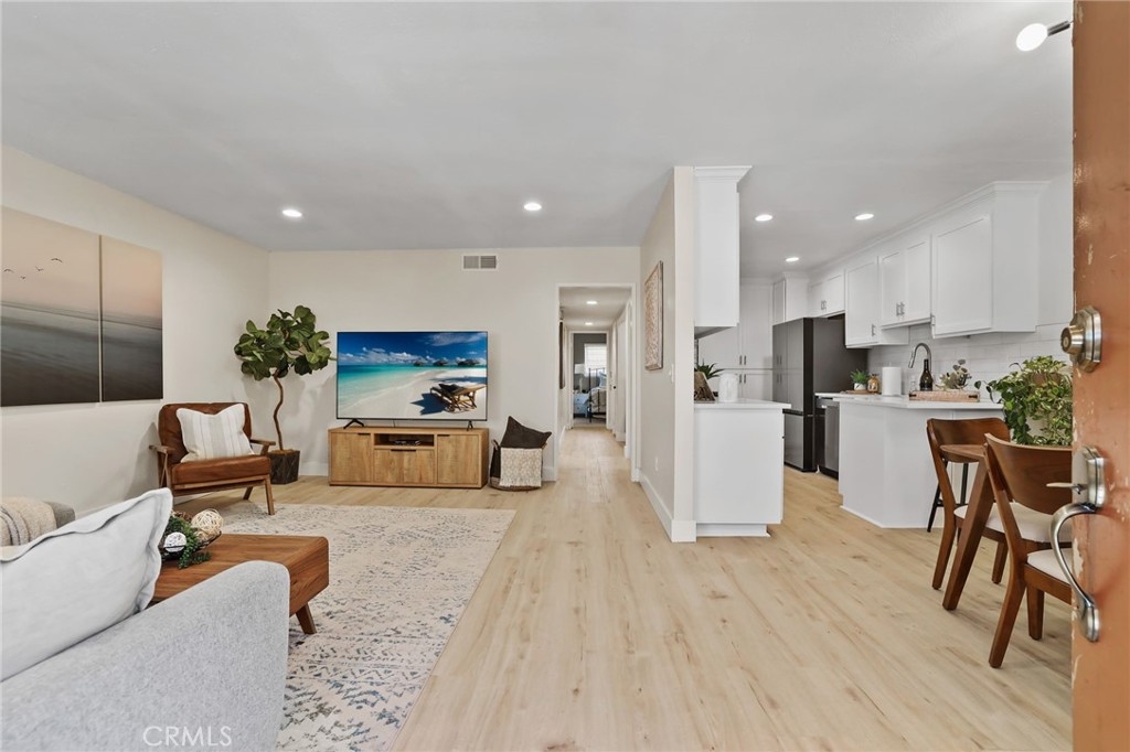 Welcome to 31488 Los Rios, unit #4, located within the Capistrano Villas Community—an impeccably renovated home in the heart of San Juan Capistrano. This thoughtfully designed 2-bedroom, 2-bathroom condo offers unrivaled convenience, surrounded by an array of shops, dining options, entertainment, and transportation hubs just moments away. As you step inside, you're greeted by a meticulously remodeled interior where every detail has been carefully considered. Brand-new windows flood the space with natural light, complemented by recessed lighting throughout and ceiling fans in both bedrooms for enhanced comfort and ambiance. A recent addition of a high-efficiency HVAC system ensures year-round climate control. Throughout the home, luxurious vinyl flooring adds a touch of seamless sophistication, creating an inviting atmosphere in the generously proportioned living area—an ideal setting for relaxation and entertainment. Indulge your culinary aspirations in the updated kitchen, appointed with beautiful quartz countertops, white shaker cabinets, and premium stainless-steel appliances. Ample storage and workspace make meal preparation that much more enjoyable. Both bathrooms have undergone a stunning transformation, featuring modern grey vanities, pristine white countertops, and elegantly appointed tile work reminiscent of timeless marble. For added convenience, the in-unit laundry facilities include a newer washer and dryer, simplifying household tasks. The primary bedroom offers a generously spacious sanctuary, providing plenty of room for relaxation. Enhanced by two expansive mirrored closets and additional storage space, it effortlessly caters to your organizational needs. Outside, the community offers an array of amenities for daily enjoyment, such as a community pool/spa, playground area, and nearby hiking trails. This is one you don't want to miss!