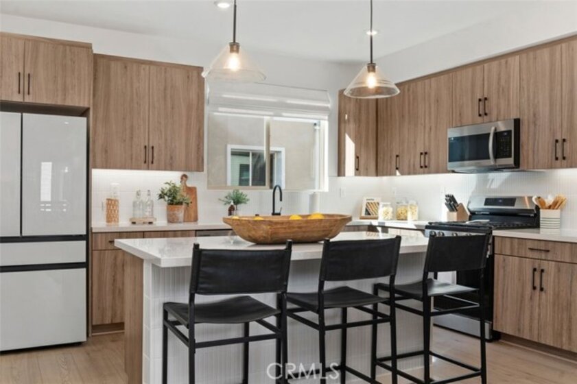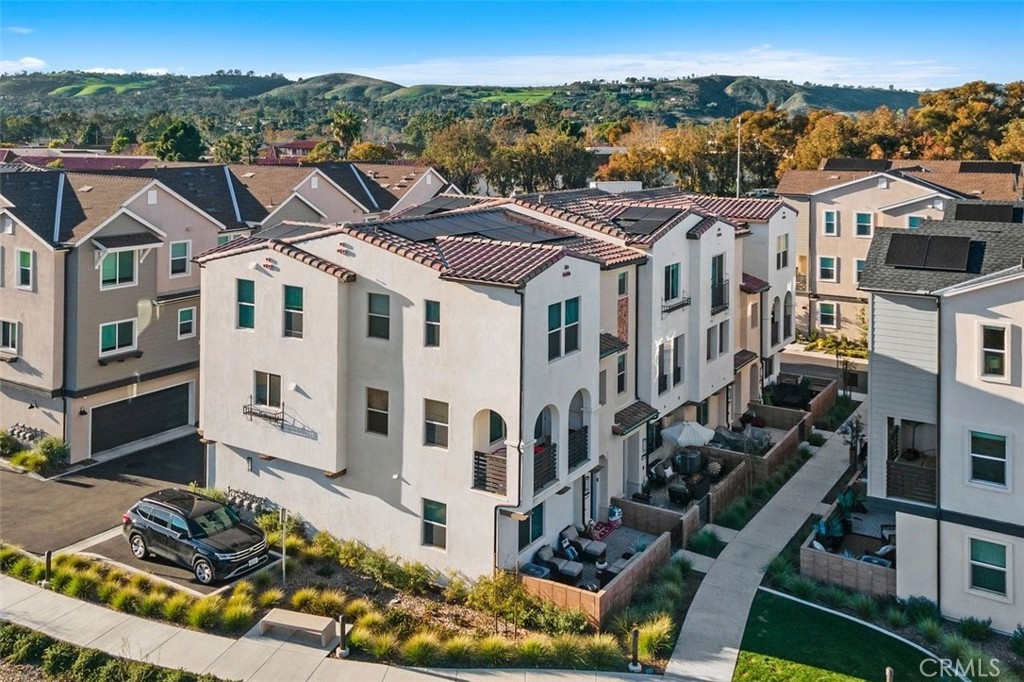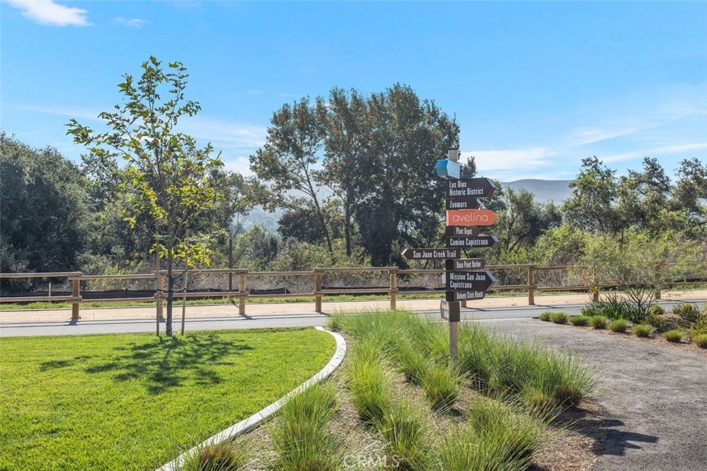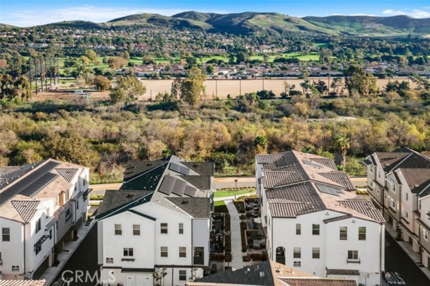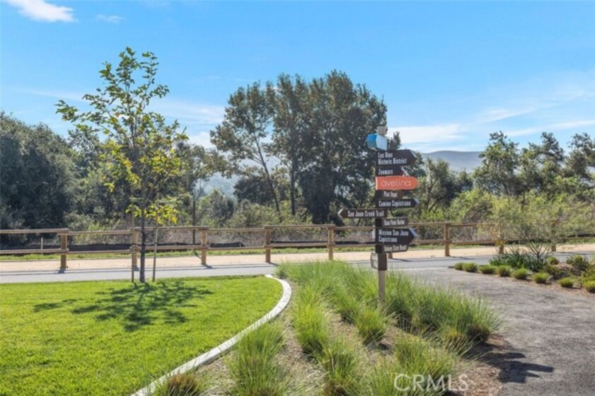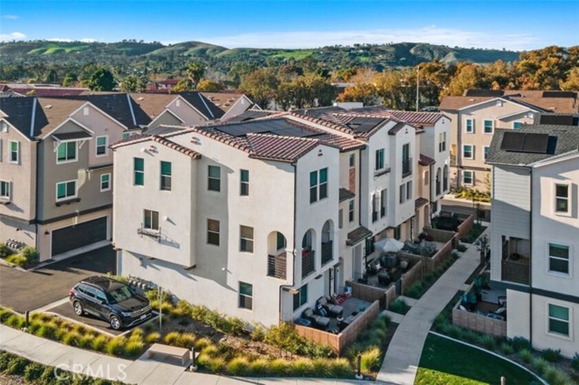 Nestled within the hillside setting of Avelina in San Juan Capistrano, this nearly brand-new 4 bedroom, 3.5 bath with owned solar Spanish beauty offers effortless indoor living and scenic trails just outside your door. A gated front patio sets the tone, inviting you to slow down and take in views of the rolling coastal hills. Step through the impressive front door into a welcoming entry layered in blonde luxury vinyl plank flooring. The main level offers a flex room that easily adapts as life evolves—work, guests, play —along with thoughtful storage and a beautifully appointed bath. Upstairs, sunlight pours through multiple windows, filling the open-concept living space with warmth and energy. Designed as a natural gathering place, the kitchen beckons with warm wood-grain cabinetry, white quartz countertops, and an expansive island detailed with custom tile and pendant lighting. The oversized walk-in pantry is a hidden gem, offering sunlit workspace, appliance storage on generous counter space, and floor-to-ceiling shelving that keeps everything beautifully within reach. A striking wood accent wall anchors the dining area, flowing seamlessly into the family room—perfect for movie nights, celebrations, or slow weekends at home. Beyond, a private balcony entices you to linger with a favorite drink, savoring uninterrupted views of the golf course and hillside beyond. High ceilings, built-in storage and a convenient powder bath complete this level. The third floor is a peaceful retreat, featuring three additional bedrooms, two full baths, and laundry. The primary suite positioned for optimal privacy offers a walk-in closet, modern ceiling fan and a spa-inspired bath with a beautiful pillow-edged tile shower. Additional highlights include owned solar, custom window coverings, white shaker doors, two-car garage with tankless water heater and adjustable overhead storage, low HOA, + Landsea Homes High Performance Features with Apple HomeKit™ smart home technology allowing you to control AC, lights, doors and more from your phone. Enjoy Avelina amenities including fire pits for s’mores under the stars, tot-lot, cornhole, workout station and direct access to the beach-bound San Juan Creek Trail inviting sunset walks & weekend bike rides. All just minutes from the Mission, the Los Rios Historic District, equestrian, golf, charming dining, and world-famous beaches. A home that looks as good as it feels - this is the one you’ve been waiting for!