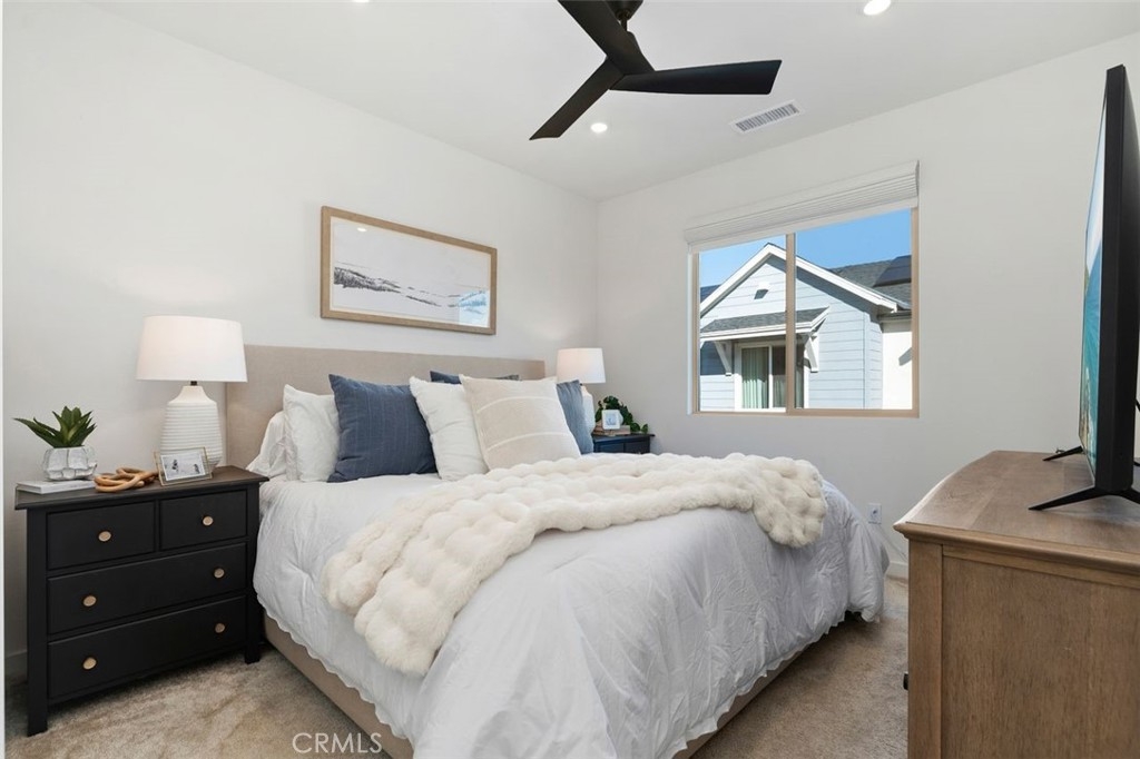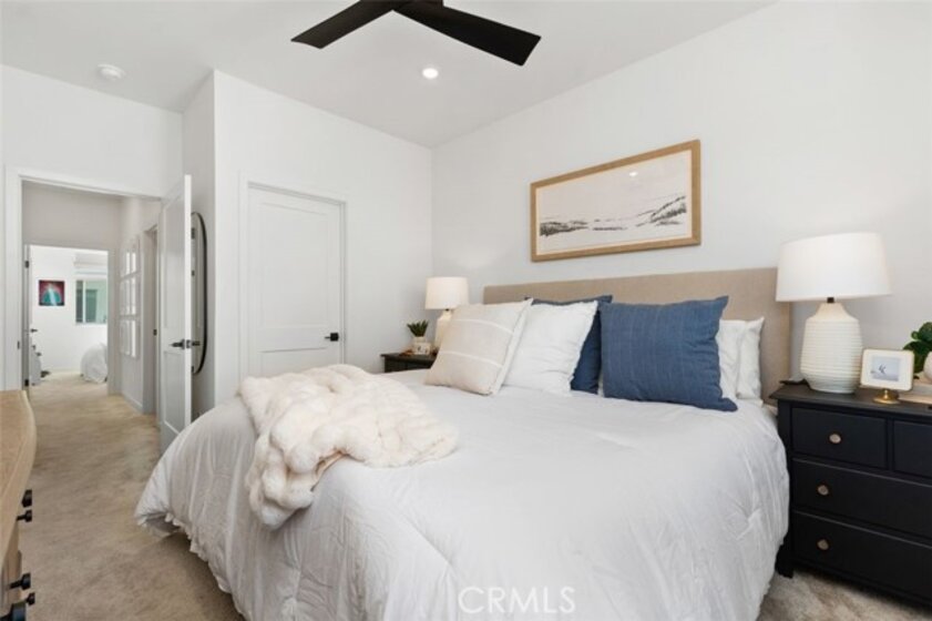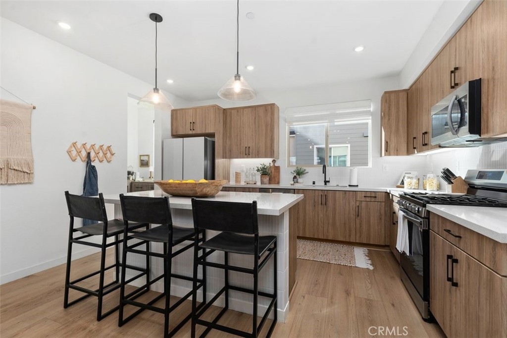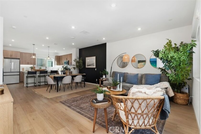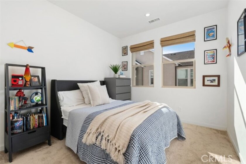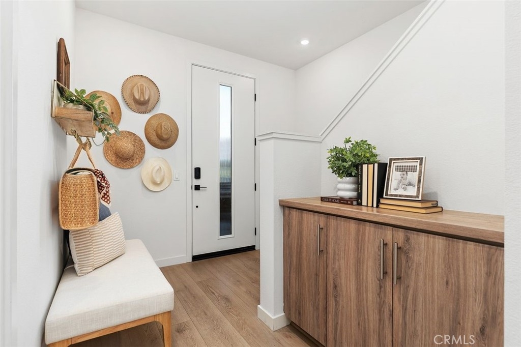 Nestled within the hillside setting of Avelina in San Juan Capistrano, this nearly brand-new 4 bedroom, 3.5 bath with owned solar Spanish beauty offers effortless indoor living and scenic trails just outside your door. A gated front patio sets the tone, inviting you to slow down and take in views of the rolling coastal hills. Step through the impressive front door into a welcoming entry layered in blonde luxury vinyl plank flooring. The main level offers a flex room that easily adapts as life evolves—work, guests, play —along with thoughtful storage and a beautifully appointed bath. Upstairs, sunlight pours through multiple windows, filling the open-concept living space with warmth and energy. Designed as a natural gathering place, the kitchen beckons with warm wood-grain cabinetry, white quartz countertops, and an expansive island detailed with custom tile and pendant lighting. The oversized walk-in pantry is a hidden gem, offering sunlit workspace, appliance storage on generous counter space, and floor-to-ceiling shelving that keeps everything beautifully within reach. A striking wood accent wall anchors the dining area, flowing seamlessly into the family room—perfect for movie nights, celebrations, or slow weekends at home. Beyond, a private balcony entices you to linger with a favorite drink, savoring uninterrupted views of the golf course and hillside beyond. High ceilings, built-in storage and a convenient powder bath complete this level. The third floor is a peaceful retreat, featuring three additional bedrooms, two full baths, and laundry. The primary suite positioned for optimal privacy offers a walk-in closet, modern ceiling fan and a spa-inspired bath with a beautiful pillow-edged tile shower. Additional highlights include owned solar, custom window coverings, white shaker doors, two-car garage with tankless water heater and adjustable overhead storage, low HOA, + Landsea Homes High Performance Features with Apple HomeKit™ smart home technology allowing you to control AC, lights, doors and more from your phone. Enjoy Avelina amenities including fire pits for s’mores under the stars, tot-lot, cornhole, workout station and direct access to the beach-bound San Juan Creek Trail inviting sunset walks & weekend bike rides. All just minutes from the Mission, the Los Rios Historic District, equestrian, golf, charming dining, and world-famous beaches. A home that looks as good as it feels - this is the one you’ve been waiting for!