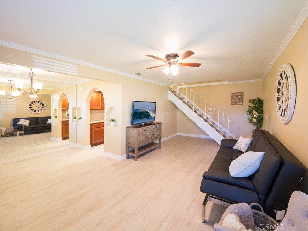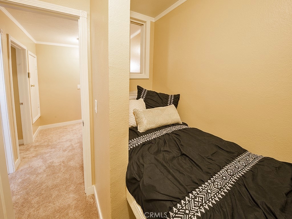 A beautiful beginning awaits you with this gorgeously updated, fully remodeled condo. Situated on a charming greenbelt, it boasts a convenient entry level location with no exterior stairs. Upgrades galore, including brand new flooring and paint, brand new dual paned windows(with self locking feature), updated woodwork, window blinds and ceiling fans. Step into the inviting living room with striking wood-like porcelain tile flooring(commercial grade), enriched with deluxe crown moldings and baseboards. Open to the living room is the light and bright dining area where a dramatic mirrored wall enhances the airy ambiance. From the dining area the porcelain flooring continues to flow into the handsomely remodeled kitchen which gleams with granite counter tops, brand new stainless steel appliances, and updated cabinetry in warm rich tones. The condo's upper level features brand new carpeting and two bedrooms, each with ceiling fans and mirrored wardrobes with built in organizers. Tastefully remodeled full bath with porcelain tile flooring and walls, new vanity and fixtures. A custom designed ADDED SLEEPING NOOK with interior window and built-ins provides a versatile space for sleeping and/or storage. New electrical breakers/fixtures all throughout. Recessed lighting in kitchen and bath. All new doors with raised panel detailing. Terrific ENCLOSED CARPORT with remote controlled access door and a wealth of built-in storage. Superb opportunity for a first-time home buyer or investor!