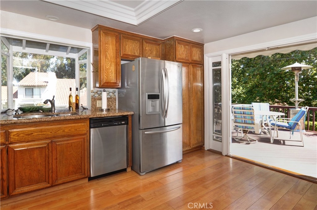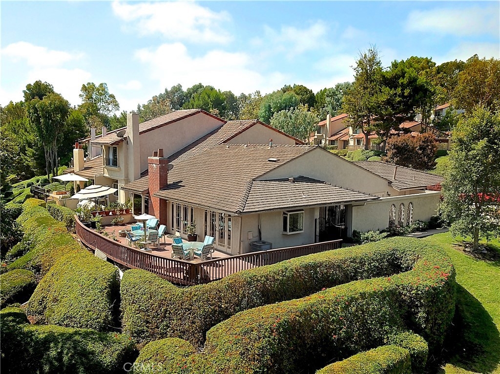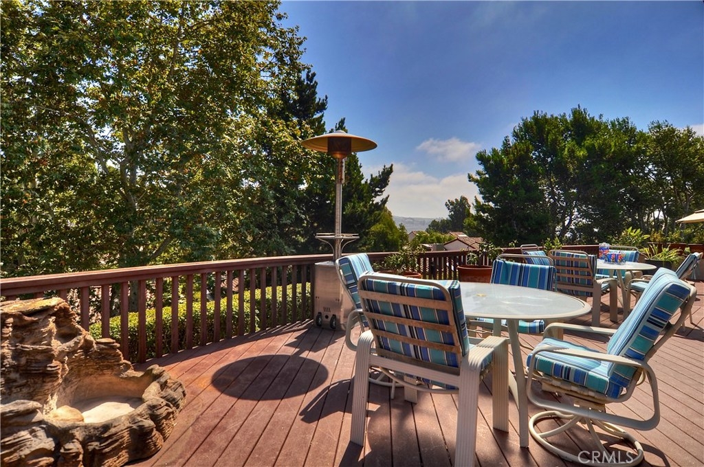 Reduced! Single story home w/beautiful views on two sides in a great location just a few blocks from Dana Point & close to the beach & Historic San Juan Capistrano*Perched high up in the tract at end of cul-de-sac, this home has one of the best views in Captain's Hill overlooking mature trees & the hills of San Juan*This end unit also has views of the HOA's grassy knolls from the kitchen's garden window*Large great room style living & dining room w/vaulted painted wood cathedral ceiling, painted brick fireplace w/mantel, bay window, & French doors opening to one of the largest decks in the tract - perfect for relaxing, grilling & California beach-close outdoor living*The deck is made of a low-maintenance composite material and there is retractable awning! Sunny kitchen w/newer stainless steel sink & appliances including almost new 5 burner gas range, granite countertop/backsplash, garden window, French doors to deck*Master bedroom is large, has 2 closets w/mirrored doors, private patio, bath w/double sinks, granite countertop/backsplash*Secondary bedrooms have French doors to private patio garden & share bath w/tub/shower combo*Bedroom 3 has closet but is currently used as office w/door added for direct access to 2-car garage*Features include a/c, laminate floor, recessed lights, concrete tile roof, crown molding, solartubes, 2-tone paint*Enjoy great HOA w/pool, RV parking, greenbelts*No Mello-Roos*Close to Dana Point Harbor, Doheny State Beach, the Mission and Downtown SJC*