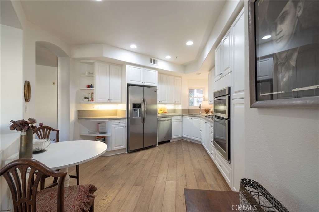 This single-level, light and bright Golf Villa is situated within the prestigious Guard Gated Community of Marbella. The open floor plan features 2 bedrooms, 2 baths, and a den that can be a 3rd bedroom. The spacious living area and formal dining room with new wide plank natural oak floors, a fireplace and French Doors leading to 2 inviting patios, creating an ideal setting for entertaining guests. The recently remodeled kitchen boasts, quartz countertops, and stainless steel appliances, seamlessly connecting to the dining and living areas that are awash in natural light. The primary suite offers a cozy fireplace and plantation shutters on the bay window, while the luxurious primary bath is equipped with quartz countertops, dual sinks, a soaking tub, and a seamless glass shower, along with a generous walk-in closet. A 2-car garage with built-in storage and nearby guest parking adds convenience. Residents can enjoy a membership at Marbella Country Club, which includes access to a private golf course, tennis courts, an Olympic-sized swimming pool, a fitness center, and exclusive dining options in the clubhouse, all just a short walk away. This property is conveniently located near shopping, freeway access, Dana Point Harbor, and the beautiful beaches of San Clemente. Regenerate